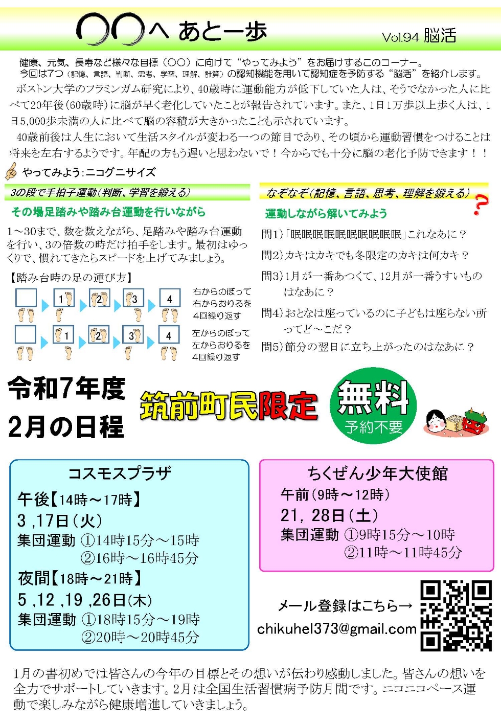 今年のスローガンは「幸せは足元から 多く動いて健康を実感」になっています。